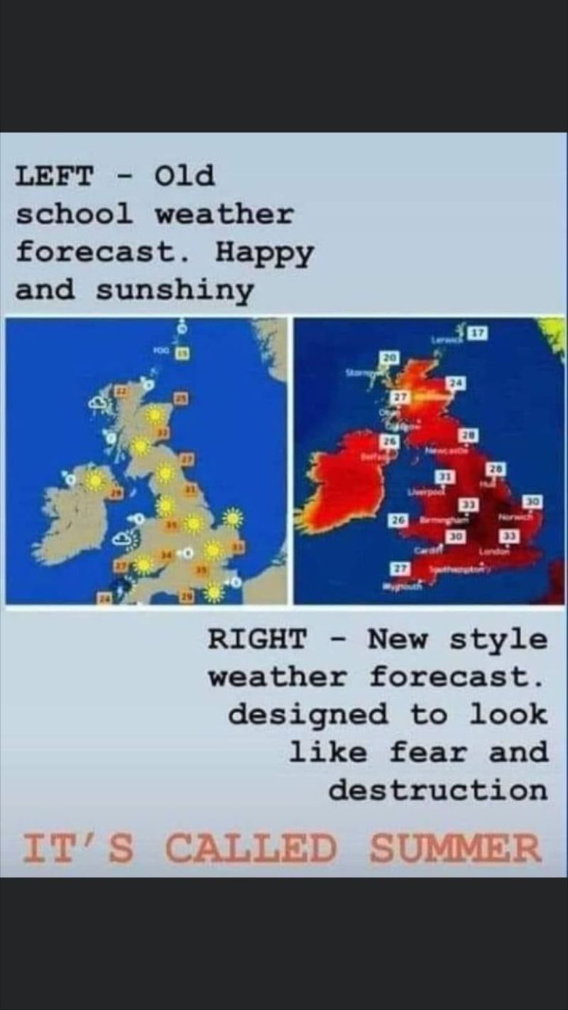 So let’s tell police, fire, ambulance, nurses, water board, gas board, council workers, bankers ad infinitum not to work because it’s hot. There will be plenty moaning then as anarchy takes hold. Never heard so much molly coddling going on. Have we really become so self centred and precious as to become a take society. Load of bulls***. Let's not forget the absolute soldiers at Sittingbourne Morrison's Cryst, without whom I would have had to of used the wife's 'Soya' Milk in my tea this morning, oh the humanity! I do agree with you to a certain extent although feel I care far less about the whole thing. For me it's another great example of the leap from not giving a flying about how people feel or their basic needs to OTT protection and mollycoddling of the population paving the way for endless moaning which is not only acceptable but is a protected and eulogised by all and any means necessary. I am still waiting for the BBC to publish my article on the 'hidden suffering' of those who still have to work and socialise like the rest of us never once being able to speak out about, let alone be helped, for having a slightly itchier @rse than the average person. We are truly the last hurdle in the bastion of true equality and inclusivity.