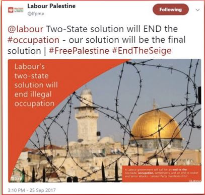 Looks like Labour have really got a handle on that far lefty antisemitism thing. Of course most rational people can see that this is a mistake with language. But seeing that this party now contains some of the least rational trigger happy labellers about...I have little issue with them getting s*** for this. That's no mistake. Think someone is being nawty and it appears to be faked having just checked their real Twitter page. Edited by Kermit8 (29 Sep 2017 9.44am)