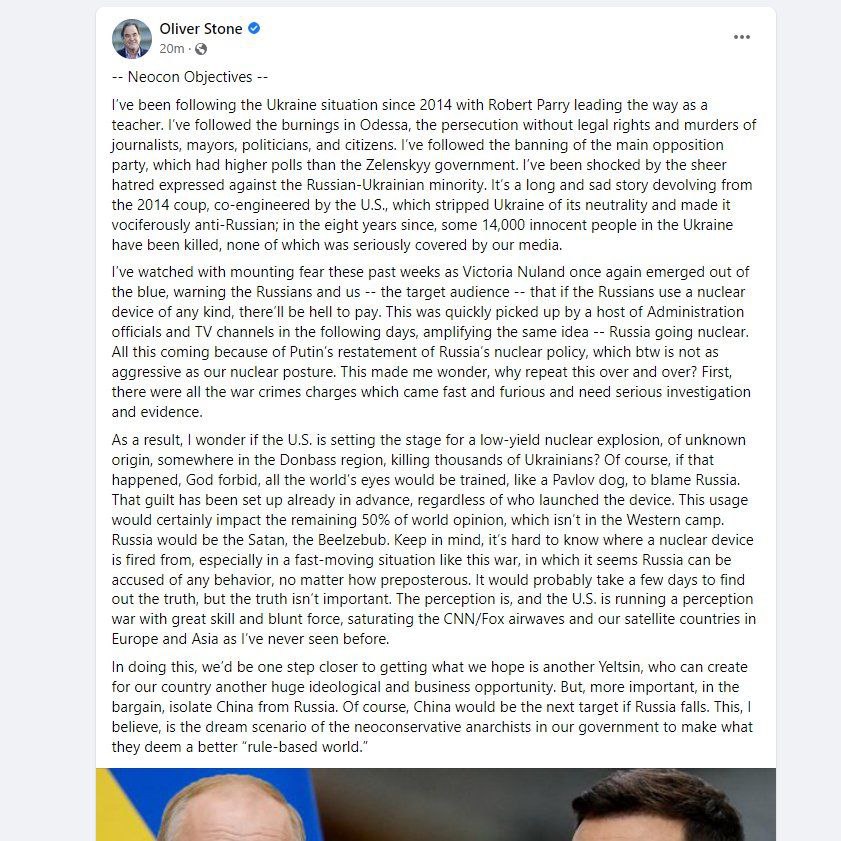 "The Duran" on Youtube has some interesting commentary on the war. Eva Bartlett is an independent journalist on the ground in Ukraine who exposed the White Hats in Syria for what they are. Interesting take from Oliver Stone....