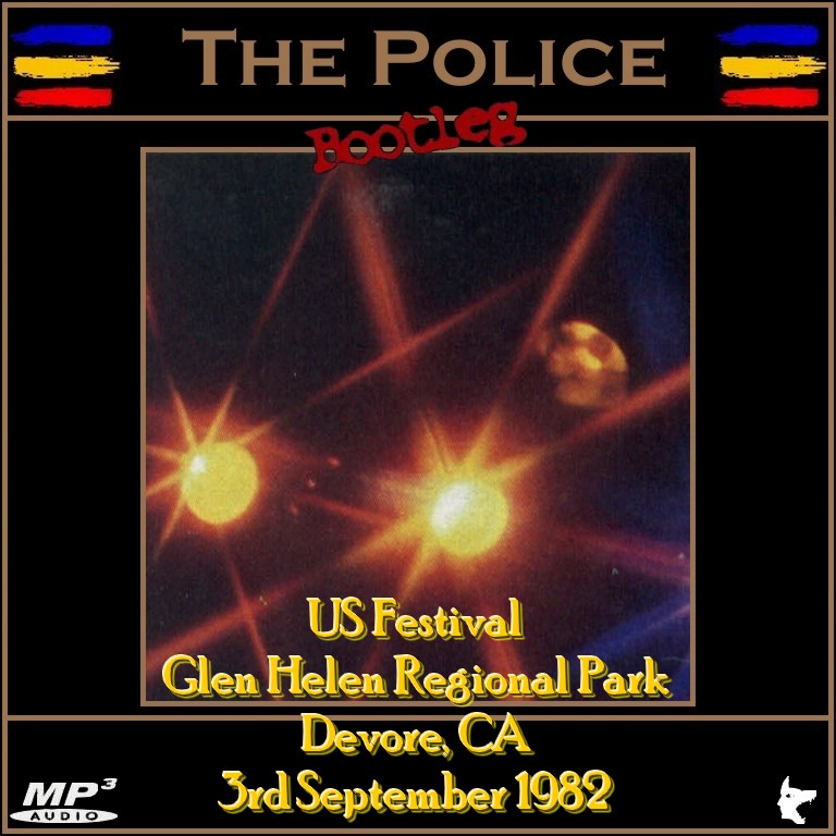 Todays extra download is a set by The Police that was recorded in Devore, CA in 1982. This is in superb quality and is a wicked set. They play a lot of their hit singles on this one. The instrument sound is great but it sounds like Sting has a sore throat - he seems to be having trouble with some of the notes and songs... Still a good boot though and one for all fans of The Police.... Here is a download link I found for :- Live at the US Festival, Devore, CA 3.9.82 - The Police (Bootleg) Quality : Superb Tracklisting : 01. Voices Inside My Head Download Link : [Link] Filesize : 184MB (Including Artwork) Enjoy!