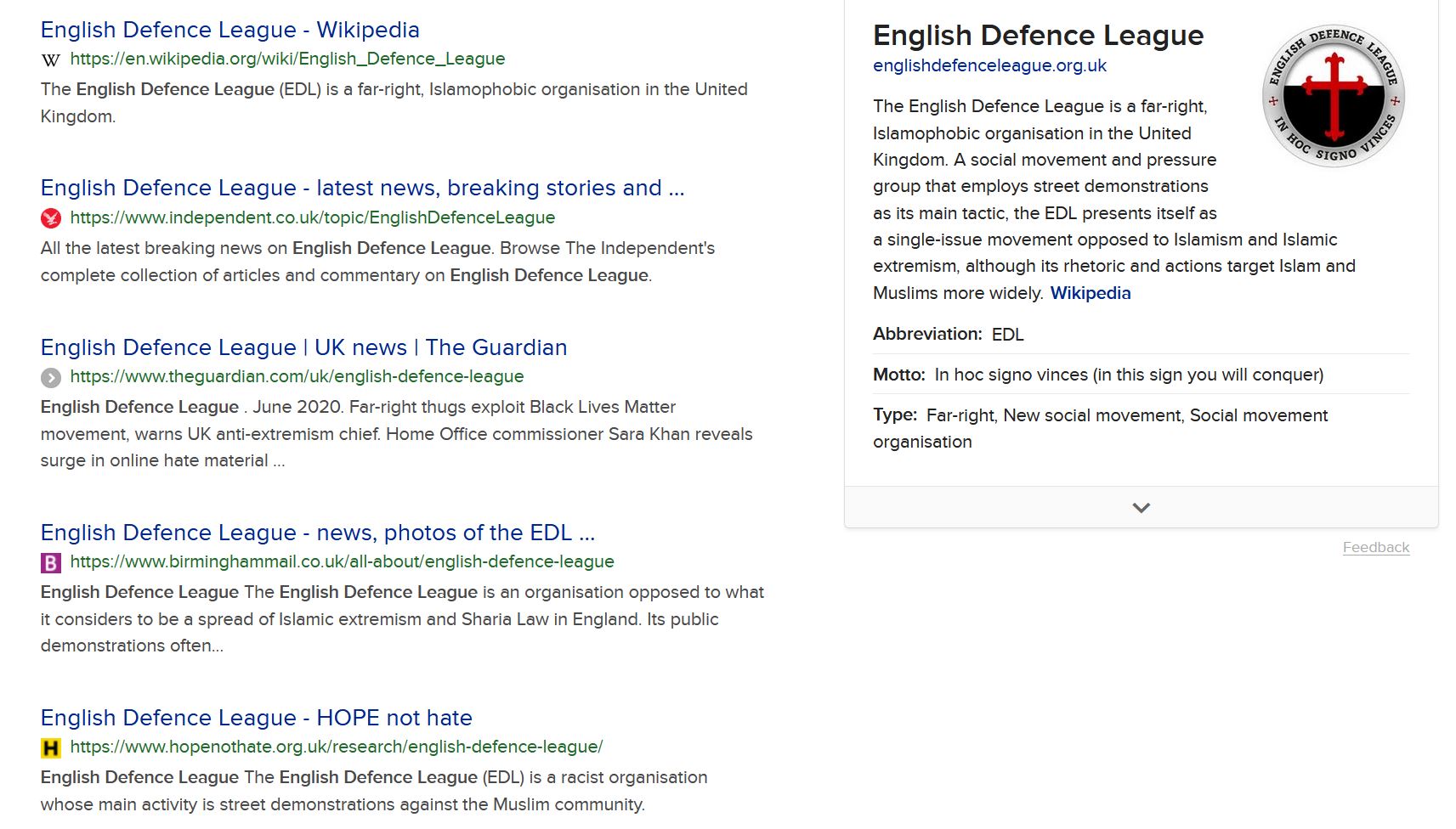 The EDL want to kick all Muslims out of the country? I very much doubt that. I think a problem exists where organisations aren't allowed to speak publicly and instead their opponents speak for them and present a skewed picture which fits what they want to believe and conversely others too. After reading his comment I went to look for the actual EDL website to see if this is actually true using duck duck go, (which uses Google's results). Instead of finding the website I only found anti EDL propaganda....maybe their actual website is on a page somewhere but I didn't find it. Hence people don't research and just say what the media feed them. Yet when you look for the UK communist party using Google their website comes up as the first link. Edited by Stirlingsays (13 Jul 2020 1.02pm)