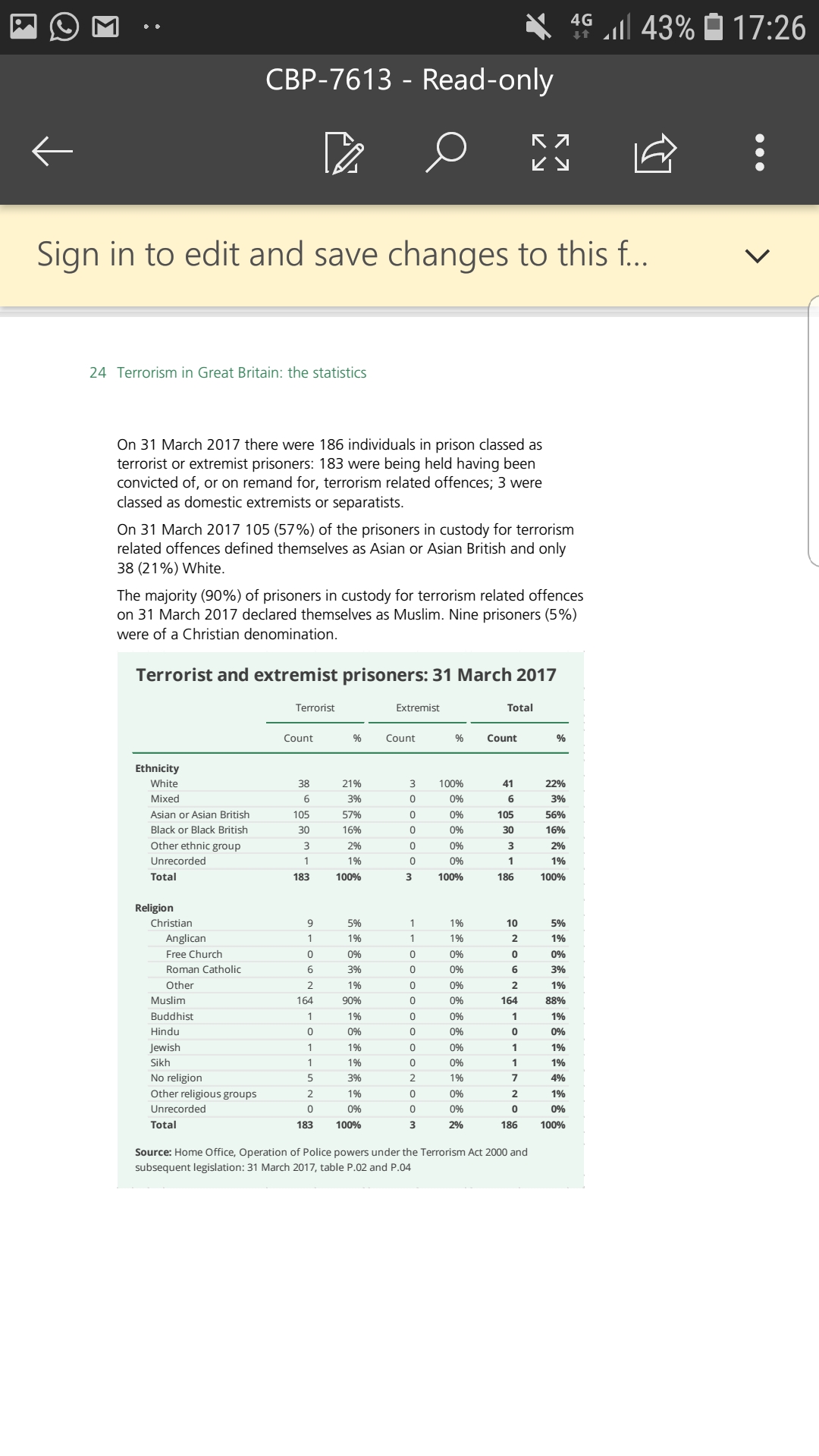 I did wonder whose cage that would rattle... Didn't realise I had to provide names. I was actually trying to make an even handed comment that I think we are seeing now, much as we did in the 70's a rise in casual racism across the board. Where people from all sides are quicker to make assumptions about others based on the colour of their skin or how they dress. You have pointed out many examples of this yourself in your posts. Posts that quote the way incidents are reported. I think the alt right and the far left are both guilty of feeding on this casual racism to their own ends. But hey if the cap fits... No.... people are drawing "assumptions" from these figures, not casual racism. Then when people raise concerns the left call them far right which people are not, they are just regular people reading the news , seeing the figures drawing conclusions. Facts are facts, we have a huge problem from a minority.