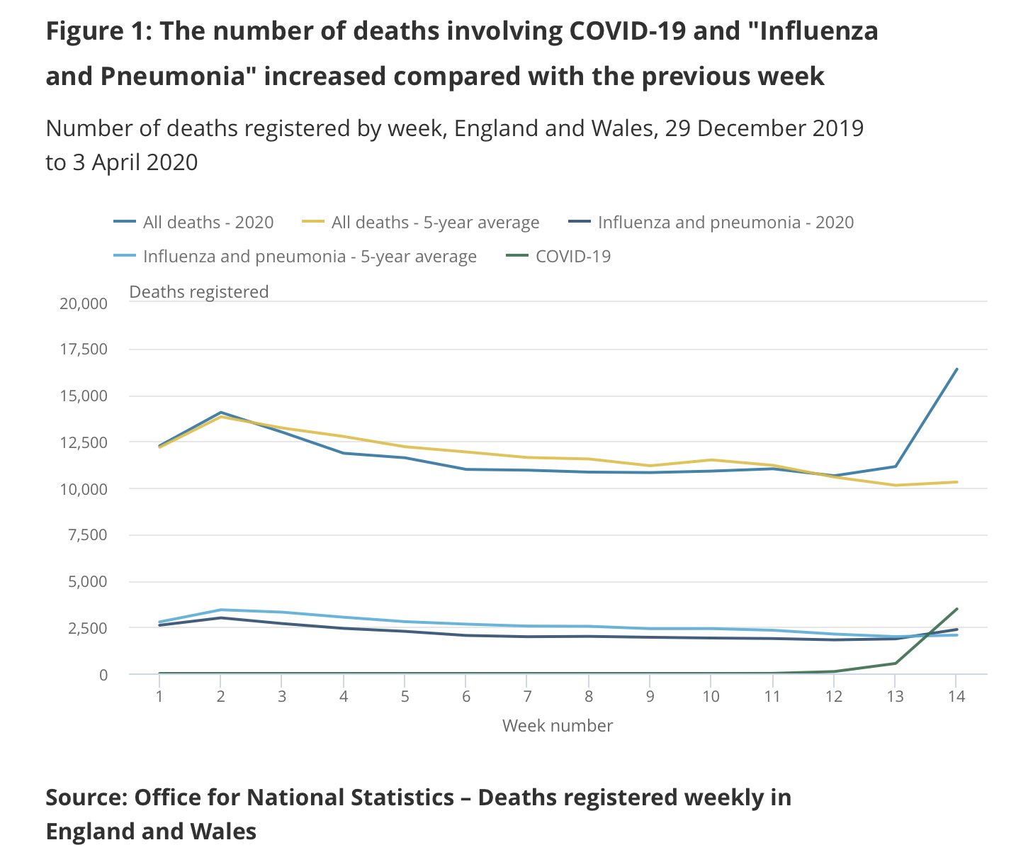 One of the first charts I have seen comparing overall deaths week on week vs a five year U.K. average. Important to note this doesn’t include last weeks data where we say a large spike in cases. Edited by SavoyTruffle (14 Apr 2020 11.32am)
