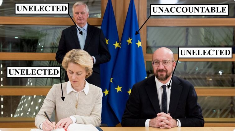 The unelected bureaucrats of the EU signed the Brexit Withdrawal Agreement this week. It was signed by two unelected EU presidents, each earning over €32,000 a month, and overseen by an equally unelected Barnier on something in the €20,000 p/m range. Edited by Stirlingsays (27 Jan 2020 5.35am)