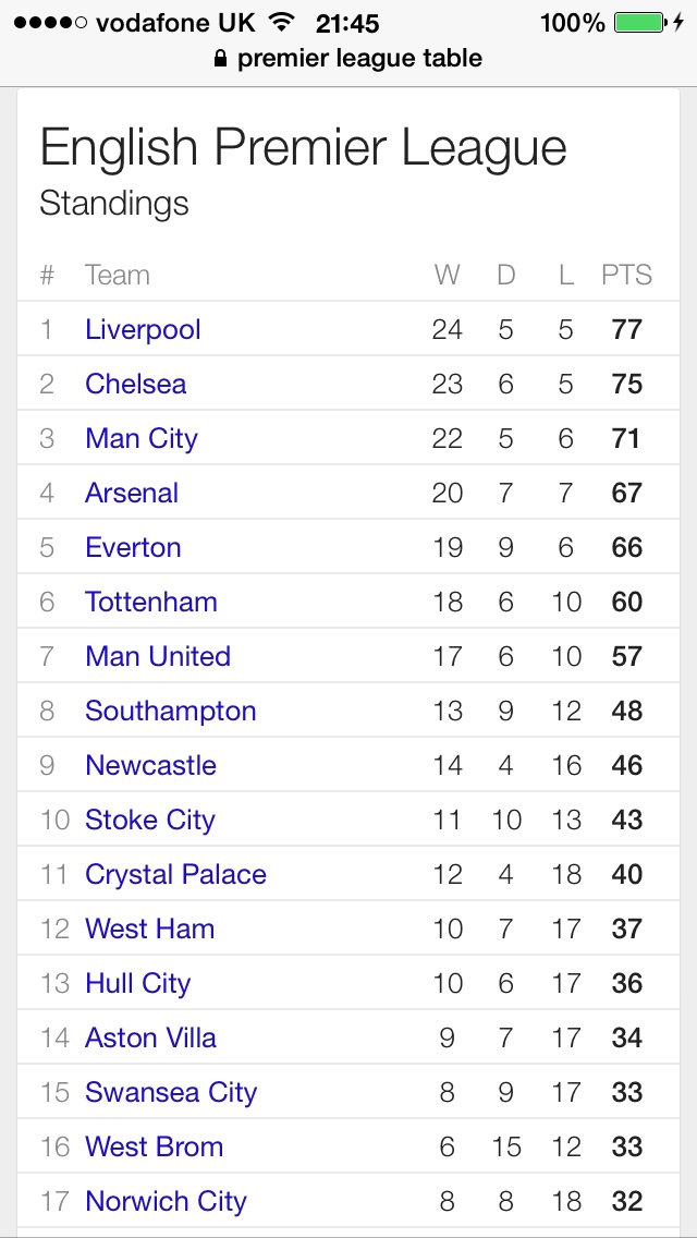 17 points and 4 places behind Manchester United. Last year spurs came 5th and we're 17 points and 4 places behind. Last year we were 25 places behind 2 years ago we were 36 places behind. Ladies and gentlemen, we are amongst the big bollocks
