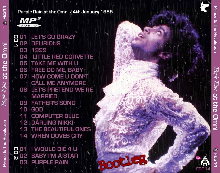 Todays first download is a set by Prince that was recorded in Atlanta, GA in 1985 while he was doing the Purple Rain tour. This is in superb quality and is a top sounding boot. He performs his hits "Let's Go Crazy" and "1999" and well as a 21 minute version of "I'm A Star" and an 18 minute version of the tour track "Purple Rain". I've posted a few boots by the Prince over the years - this is another good one... if you like Prince & The Revolution then grab this one..... Here is a download link I found for :- "Purple Rain" Live at The Omni, Atlanta, GA 4.1.85 - Prince & The Revolution (Bootleg) Quality : Superb Tracklisting : Disc 2 : Download Links : Part 1 : [Link] Part 2 : [Link] Part 3 : [Link] Filesize : 271MB (Including Artwork and Tracklisting) Back Cover : [Link] Enjoy!