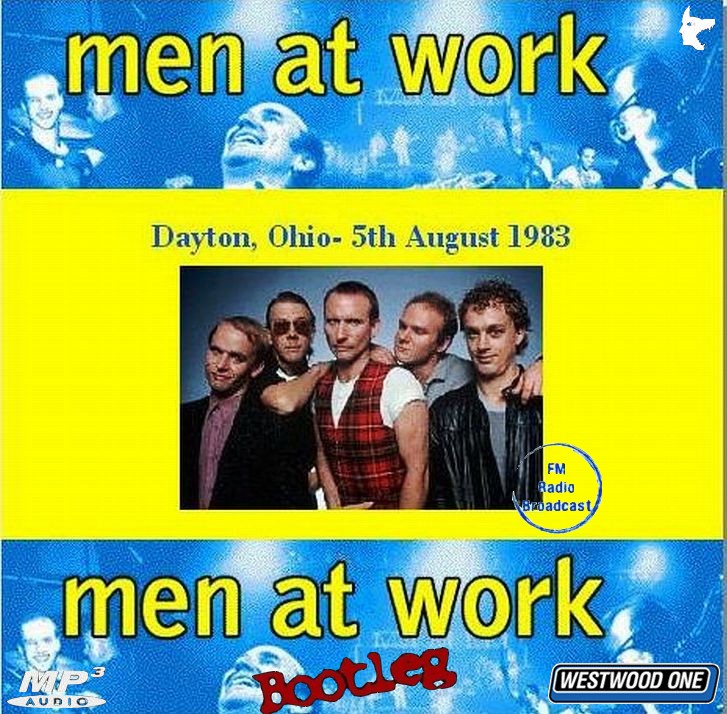 Todays extra download is a set by Men At Work that was recorded in Dayton, Ohio in 1983. This is the first album or bootleg by this band that I've posted and is in superb quality, the audio has been taken from a pre fm soundboard - the show was later broadcast on the famous Westwood One Radio Show. The band play a good set with a top version of their biggest hit "Down Under". This is thoroughly recommended..... Here is a download link I found for :- Live in Dayton, Ohio 5.8.83 - Men At Work (Bootleg) Quality : Superb Tracklisting : 01 - No Restrictions Download Link : [Link] Filesize : 88.8MB Back Cover : [Link] Enjoy!