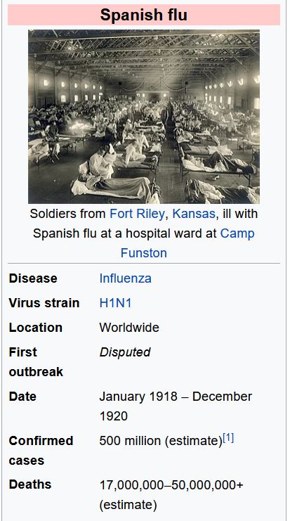 Really? Even in the abstract of the link you gave me they provide no certainty. 'The timing and location of the first cases of the 1918 influenza pandemic are still controversial, a century after the pandemic became widely recognized. Here, we critically review competing hypotheses on the timing and geographical origin of this important outbreak and provide new historical insights into debates within military circles as to the nature of putative pre-1918 influenza activity. We also synthesize current knowledge about why the 1918 pandemic was so intense in young adults. Although it is still not clear precisely when and where the outbreak began and symptom-based reports are unlikely to reveal the answer, indirect methods including phylogenetics provide important clues, and we consider whether intense influenza activity as far back as 1915 in the USA may have been caused by viral strains closely related to the 1918 one.'