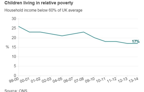 Whatever the stats are (and the Cameron government rejigged the child poverty ones in a way that resulted in a seemingly but not necessarily actual downwards trend),child poverty remains a sad comment on what we as a society (and through our votes elected governments) don't even begin to try to really address. As Dr Barnado's (hardly a left wing instituition) says: "There are currently 3.7 million children living in poverty in the UK. That’s over a quarter of all children. 1.7 million of these children are living in severe poverty. . In the UK 63% of children living in poverty are in a family where someone works. These child poverty statistics and facts will help to give you an idea of the scale of child poverty in the UK and the affect it can have on: a child's education