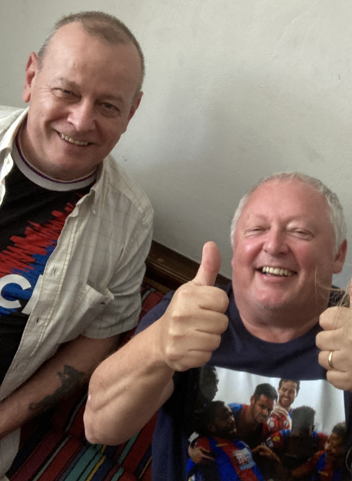 Brides and myself, watching the pathetic offering in the Red Lion, Lanzarote, obviously the smiling Photo was taken before kick off A couple of cheerful chappies.