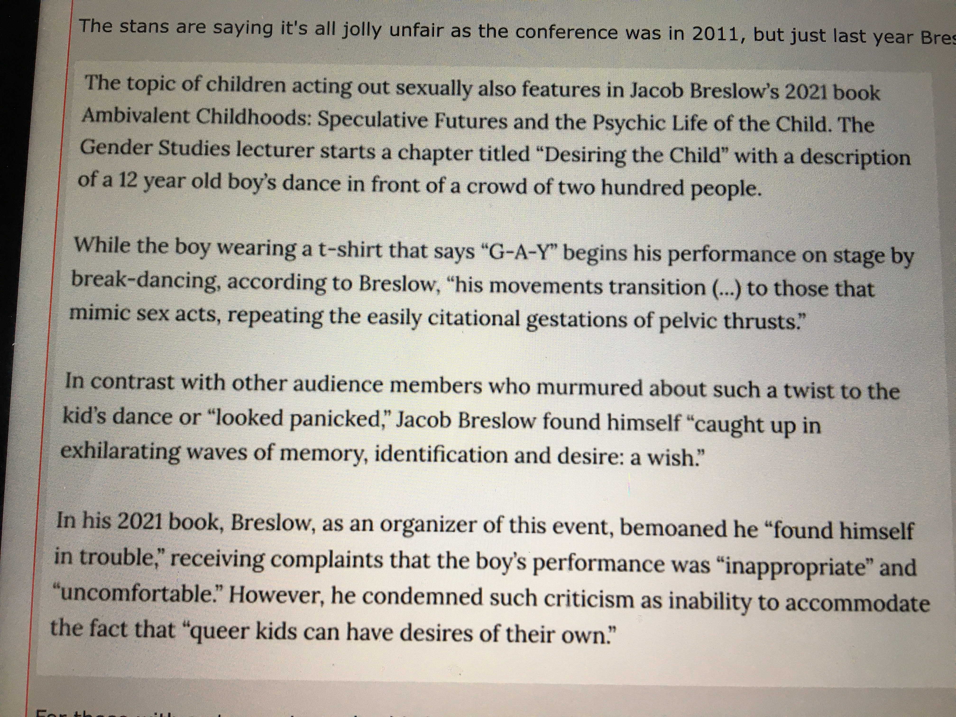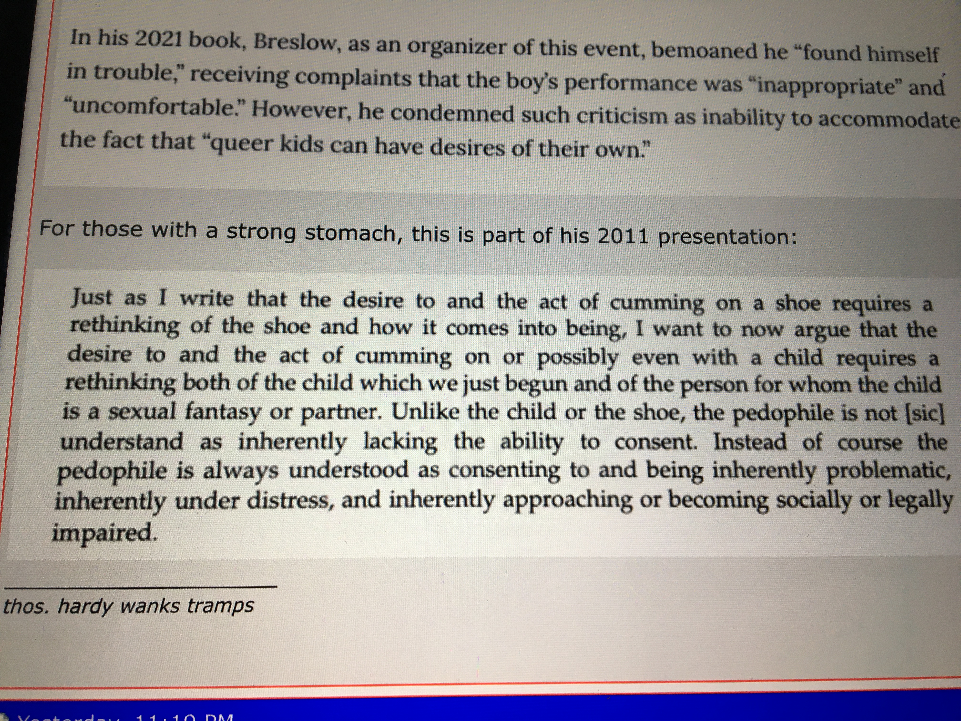 Calling paedophiles “minor attracted persons” is taken out of context? How exactly? Speaking at a conference held by an organisation that want paedophiles to be able to live “with dignity”. Doesn’t prove he is a paedophile but sure as damn it shows he appears not to have an issue with them. Not just the Mail reporting it, was initially in the Times Edited by Spiderman (07 Oct 2022 2.17pm) For those on here saying he has been misinterpreted, please read from his book last year Edited by Spiderman (07 Oct 2022 5.21pm)