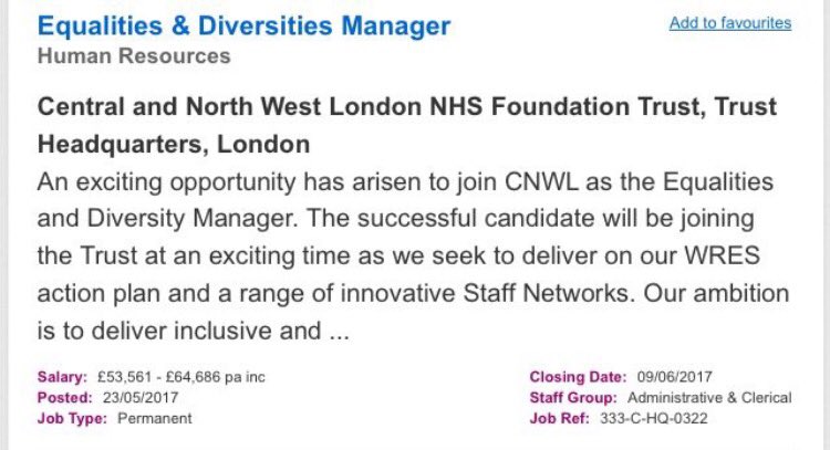 Good afternoon, I hope you slept well. First, to put into context whether the NHS is inefficient. The US constitutes more than half of the world's healthcare spend. Cost per head of population in 2015 US,451. The UK cost per head is US,003. Germany is US,267. Next, why do I say Service User. The whole concept behind reducing the rate of illness and cost of looking after sick people is to prevent it starting and then control it escalating. Encouraging people to give up smoking, check for common cancers, keep to a sensible weight and diet and avoid excessive drink or recreational drugs can make a massive difference. Finland has had huge success by convincing its population to eat more forest fruits for example. I see no contradiction in hiring someone to communicate to all of the population, especially the hard to reach, that they should look after themselves and go to the Doctor early when they have some kind of issue. This is also required by regulation. One webmaster per 5 CCGs? Croydon CCG looks after around 400,000 so this person will be trying to communicate to up to 2million people. Using that interweb thingy that the young people seem to like. This kind of communication is trying to get to people BEFORE they become patients. Call them customers or clients if you like, it's all the same to me. As I said before, better not to simply take a negative view on everything before you understand the logic. Edited by Mapletree (03 Jun 2017 12.56pm) Thank you, I did. But all of this is achieved through the GP system. I'm forever getting texts from mine, asking me to come in for this check and that check, flu jabs etc. Why introduce an additional layer of bureaucracy to restate a message that's already being given out through GP surgeries (and through numerous poster campaigns)? The sort of people this role has been created for (who clearly have internet access) are hardly likely to be people who follow the NHS on Twitter just so they can be kept up to date, are they? The education is out there already and this role adds nothing to that effort. I attach another absurd (and well paid) job advert for your comment.