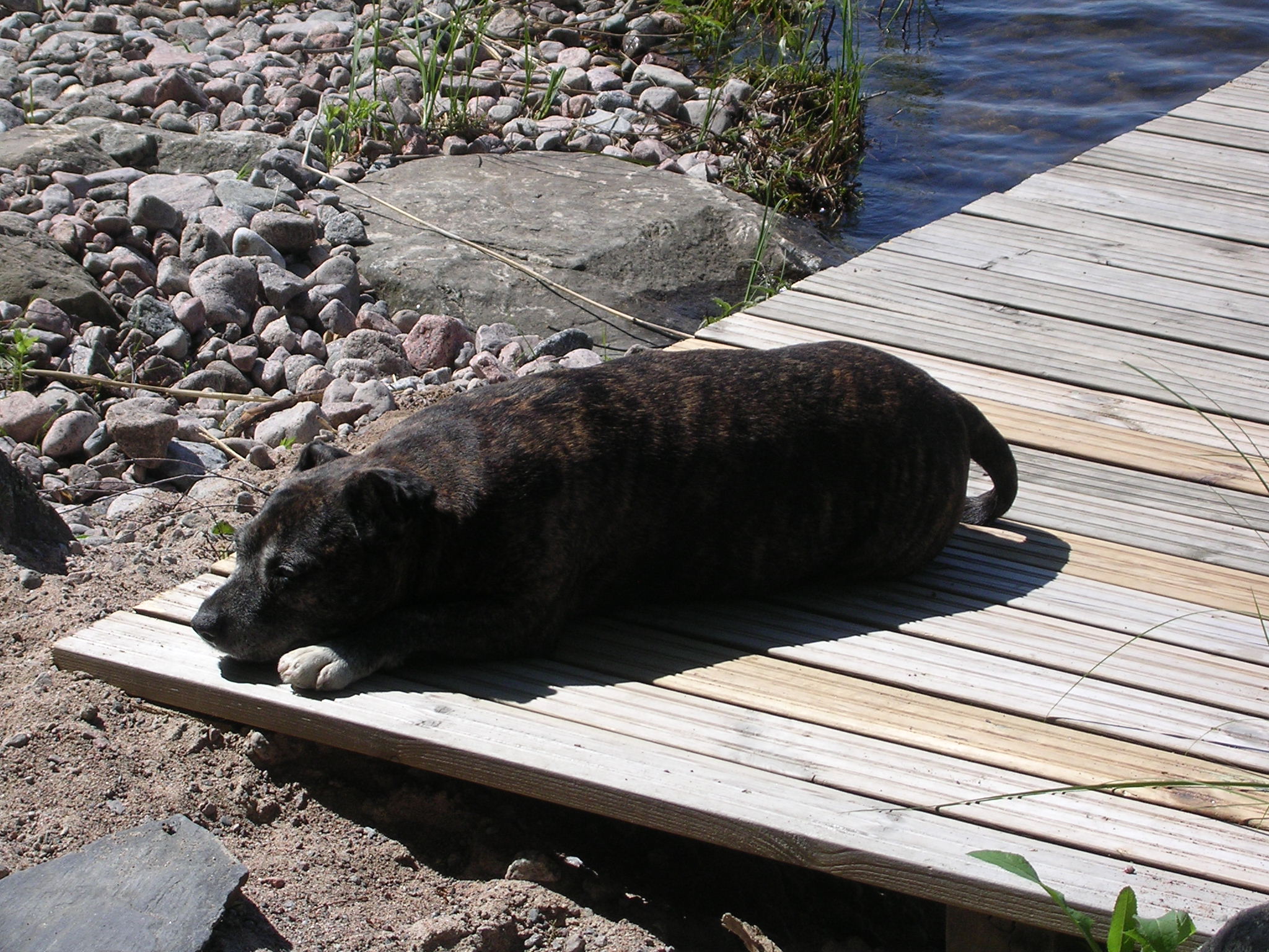 mate's dog asleep on the pier to his summer house.