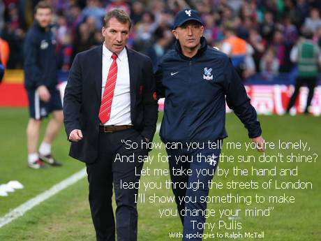 Meanwhile, over on the Crystal Palace FC Supporters Page on Facebook: "oh Dwighty Gayle's magic, he wears a magic hat and when we play the scousers he says I'm having that, he scores them with his left foot, he scores them with his right and seeing Suarez crying, he made our f*cking night"
