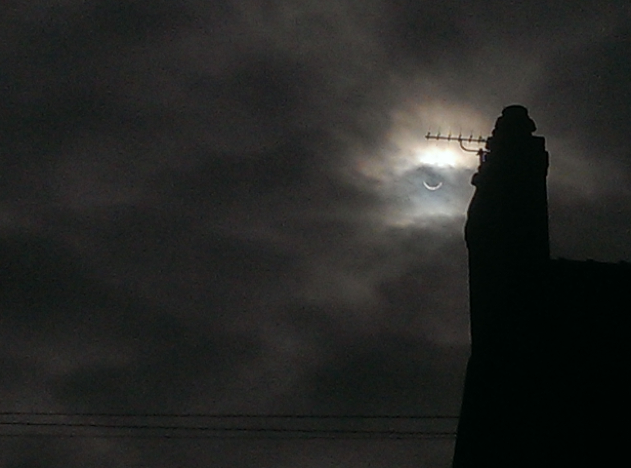 Great view from Cardiff - shame I didn't have any spex! My phone's camera managed to show a blazing sun next to an eclipsed sun. Have no idea how that happened!