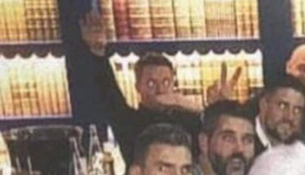 Give over. Nobody in their right mind or sober (and I can't see any booze on the table) does a Nazi salute on a table with a load of big black fellas, a German and a Serbian. It's probably as he's said it and if not, so what? The aforementioned group of his friends weren't bothered and it's not as if he's out burning crosses. This is a non-story designed to wind up the perpetually offended such as yourself. Don't be silly enough to fall for it. Why does it have to be black people, German or Serbian that would be offended. You really honestly think it is as he said. He is trying to project his voice by using his hand. At the same time as his hand is not even in a waving motion. If he had done this in Germany he would have been arrested. Look, I just think it was a silly joke. He should have just accepted it and moved on. Now it just looks a bit pathetic. As for perpetually offended, I hate the way the world is going and how sensitive everyone is. This not the same though.