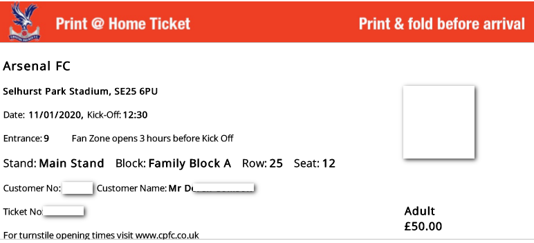 Spare ticket in the main stand going for face value, see picture attached for details. p.m only please if you're interested as I don't look in on here very often. Edited by Deleagle (08 Jan 2020 6.50pm)