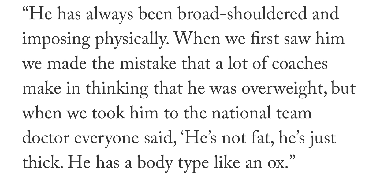 I would recommend that you read the article about him on The Athletic where literally everyone of his coaches and even Aki who signed him have said that he is not fat. Snippet attached. He's thick, apparently.