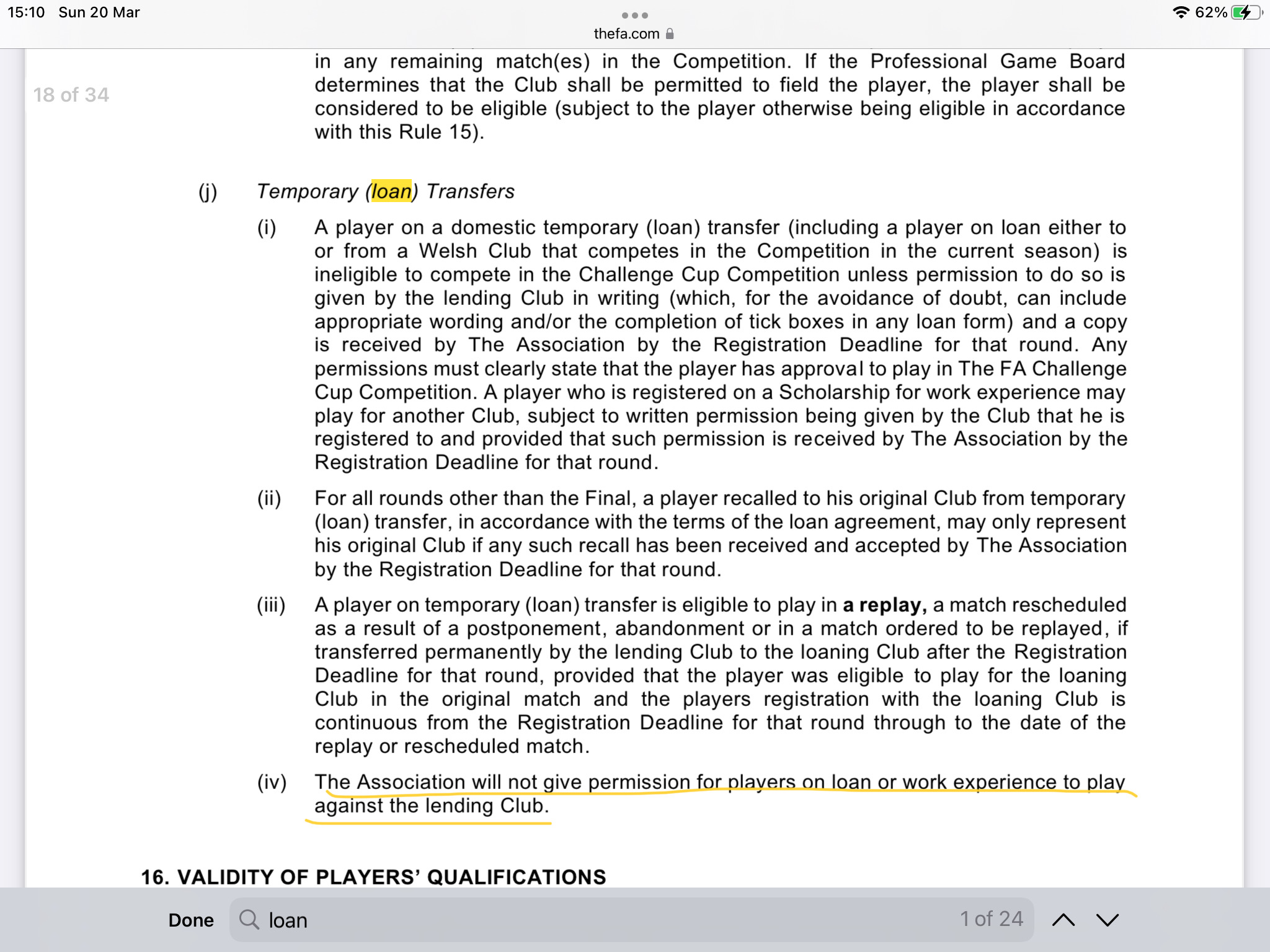 This post has been merged from a topic called 'Can connor play against Chelsea or not?' by becky No he can’t. See the FA Cup rules below….