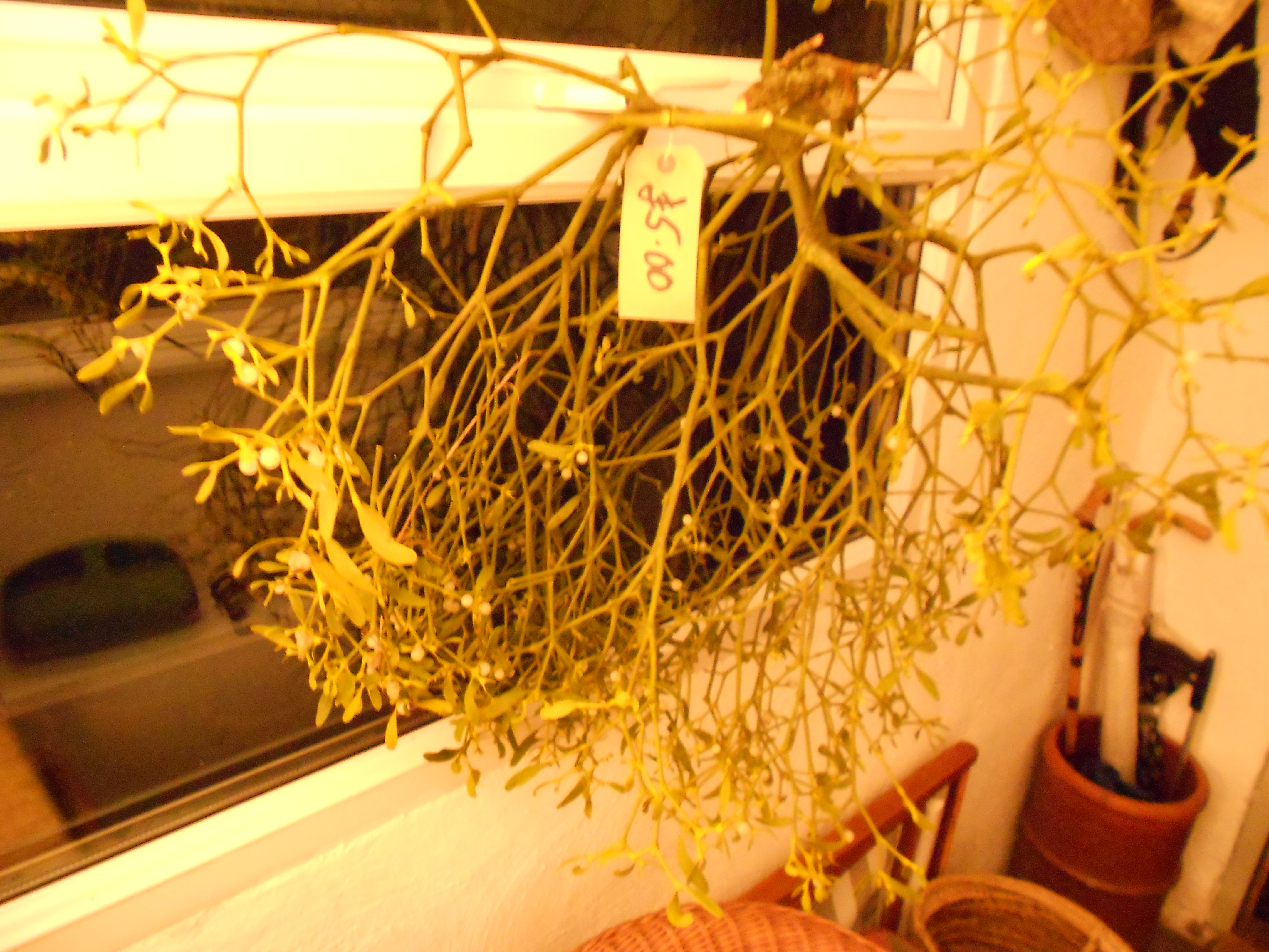 Got some mistletoe hanging. I left the price on, just in case we get any female visitors willing to pay £5 for a snog with Forest. times is tough