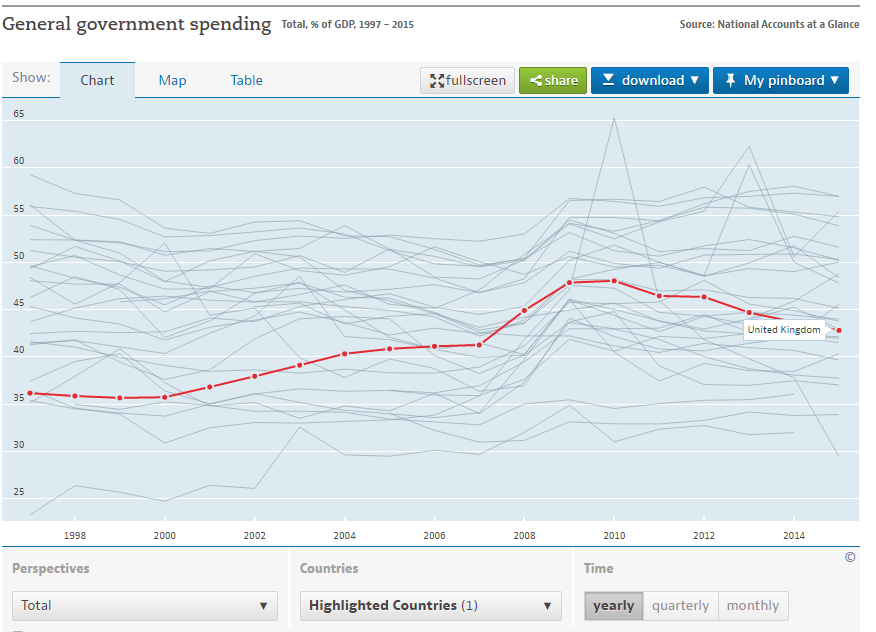 Hasn't government spending increased, along with the deficit under the Coalition and Conservative governments though, which is arguably spending money they don't have, to fund a country: all despite austerity That's incorrect. It's gone down quite a lot. Also see my previous point regarding "money we don't have".