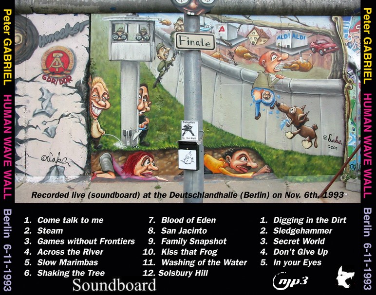 Todays first download is a set by former Genesis front man Peter Gabriel that was recorded in Berlin, Germany in 1993. This is simply the best sounding Peter Gabriel bootleg I've ever heard - and I've got/heard loads. The quality on this one is just about perfect - absolutely unbelievable. It's a cracking set as well with some of his most famous songs being performed "Games Without Frontiers" "Steam" "Solsbury Hill" and "Sledgehammer" are all played. If you like Peter Gabriel, this is a MUST have..... Here is a download link I found for :- "Human Wave Wall" Live at Deutschlandhalle, Berlin, Germany 6.11.93 - Peter Gabriel (Bootleg) Quality : Superb Tracklisting : Disc 1 Disc 2 Filesize : 163MB (Including All Artwork) Back Cover : [Link] Enjoy!
