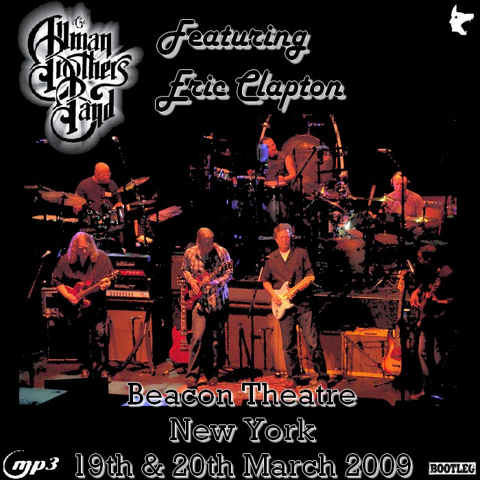 Todays first download is a bootleg by The Allman Brothers band with guest Eric Clapton that was recorded at the Beacon Theatre, New York in March 2009. Eric joined the band for a set on two nights - the 19th and 20th of March. This boot only features the Allman's with Clapton as their own live show was an official release. The is in superb quality - really killer sound, and it's a top set as well. I've featured the Allmans a bit recently - and I always grab good quality EC boots - so the two together is a bonus. Some classic blues rock tracks on this one as they play tracks like "Little Wing" and a really fantastic 16 minute version of "In Memory Of Elizabeth Reed" and of course. both nights finish up with a top version of "Layla". This doesn't need me to recommend it....take a look at the band line-up... it speaks for itself!. Here is a download link I found for :- Live at the Beacon Theatre, New York City, NY 19/20.3.09 - The Allman Brothers Band With Eric Clapton (Bootleg) Quality : Superb Tracklisting : Set One : Set Two : Download Links : Part 1 : [Link] Part 2 : [Link] Part 3 : [Link] Filesize : 297MB (Including Artwork and Tracklisting) The Band Line-up : Special Guest(s) Enjoy!