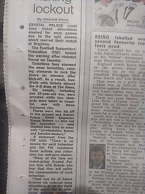 We're going back to the bad old days of police incompetence being blamed on football fans. Remember what the police said after Hillsborough? The fans urinated on the dead etc etc That was all rubbish. But they briefed the papers (namely The Sun) and they gleefully ran it because it makes a good story and it's much easier to blame the fans than question the police's conduct. Local newspapers are are less editorially independent than they were in the 'bad old days' and they were pathetic even then. so I imagine the reporting in The Argus will have been pretty spineless and totally towing the police line I wasn't there, but does anyone think there really were knuckle dusters being smuggled into the ground?