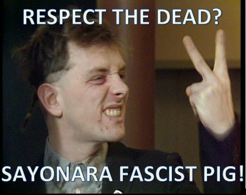 Is all this delight in the demise of an 87 year old woman with dementia proportionate or indeed seemly ?? Not too much class on display is there ? It'd bee a lot more vibrant if it had been a 50 year old woman. Quote The Sash at 09 Apr 2013 2.56pm