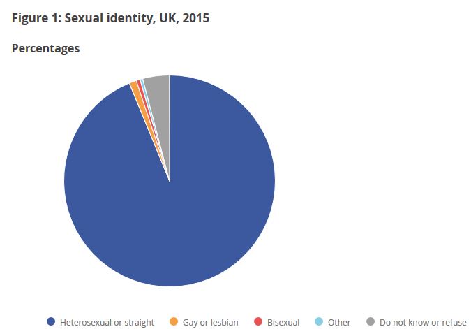 Depends how you measure sexuality. 45% of Men and 60% of women interviewed report having had sexual experiences with members of their own gender - which kind of puts a bit of an emphasis on bisexuality with a preferential choice - Which interestingly is reflected among our closest biological relative the Bonobo Chimp. I'd probably argue that the most common of human sexuality is masturbatory. Even among men and women, I reckon people crack one out to their own bass strum more than they have sex. My feeling is that people are sexually defined by pleasure and kinks more than biology or procreation. Is right to limit heterosexuality to just being man on woman, if it involves bondage and non-penetrative orgasm. Not really Jamie.....I don't define my self vaguely for a start. As for your stat in the post I'm replying to....Well, not all sexual contact is fully consensual so I wouldn't say that's attuned to accuracy about their sexuality. When it comes to a person's sexuality how a person defines themselves is the relative statistic. According to the office of national statistics in 2015 your implication is way off. That has the gay/bisexual population at 1.7 percent...Only 0.6% identified themselves as bisexual...a figure so low I find it hard to believe but there you go. A larger group, 4.1%, refused or didn’t know how to identify themselves. If we generously regard all of the 'don't knows or refused to answer' as all being non heterosexual....In total that's 5.8 percent who view themselves as anything different from straight.....That's what...about 1 in 16 at most. My personal cynicism is that this figure is higher than that as we need to factor in cultural bias towards sexuality and many people's inherent self image attachment to cultural acceptability within their group....For example averages are significantly down in asian or black groups compared to white or mixed. So my personal hunch...though obviously not proven is that it's probably somewhere between 1 in 10-15. Like I was saying earlier in the thread women are more likely to identity as bisexual (0.8%) than lesbian (0.7%), whereas men are more likely to report as gay (1.6%) than bisexual (0.5%). Edited by Stirlingsays (27 Jul 2017 3.13pm)