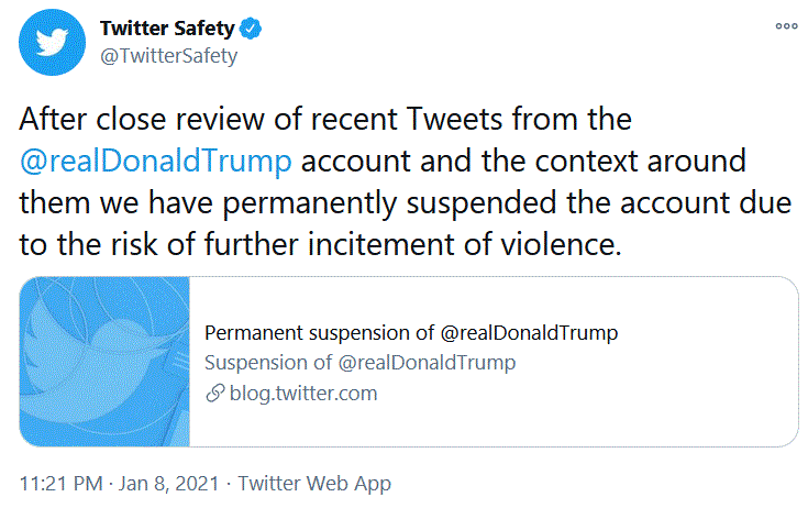 Trump has been permanently banned from Twitter Edited by BlueJay (09 Jan 2021 12.16am)