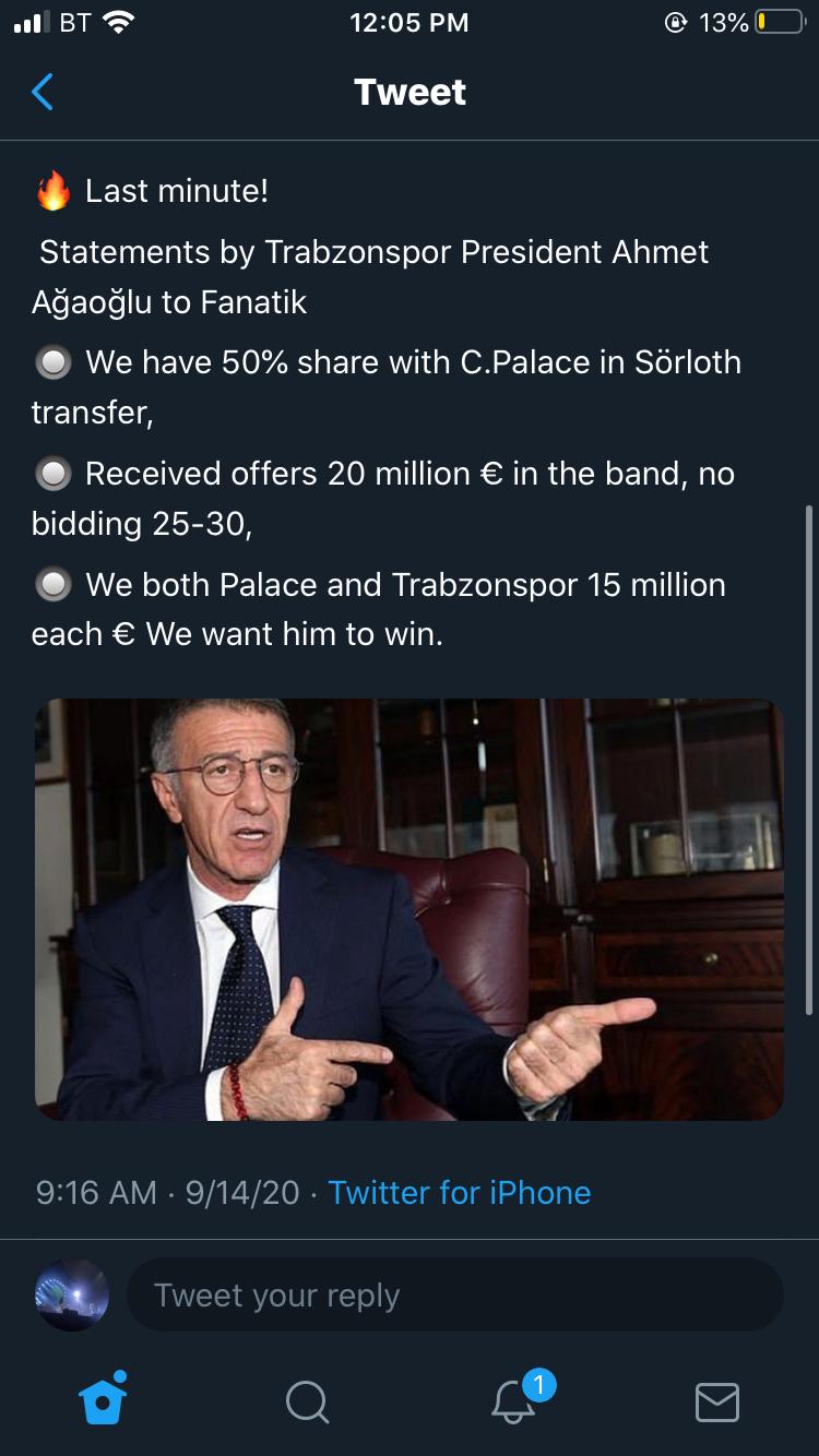 I read an article recently that may explain the issues, there is a clause for the Turks to buy, however as soon as they buy, Sorloth’s contract states that he has a 10 million euro release clause, so the deal needs to be structured that palace buy out the Turks buy clause, and then palace can sell him to whoever, basically any transfer fee between palace new club is shared between palace and Turks, i have no idea if the clause re his contract is true, but makes sense