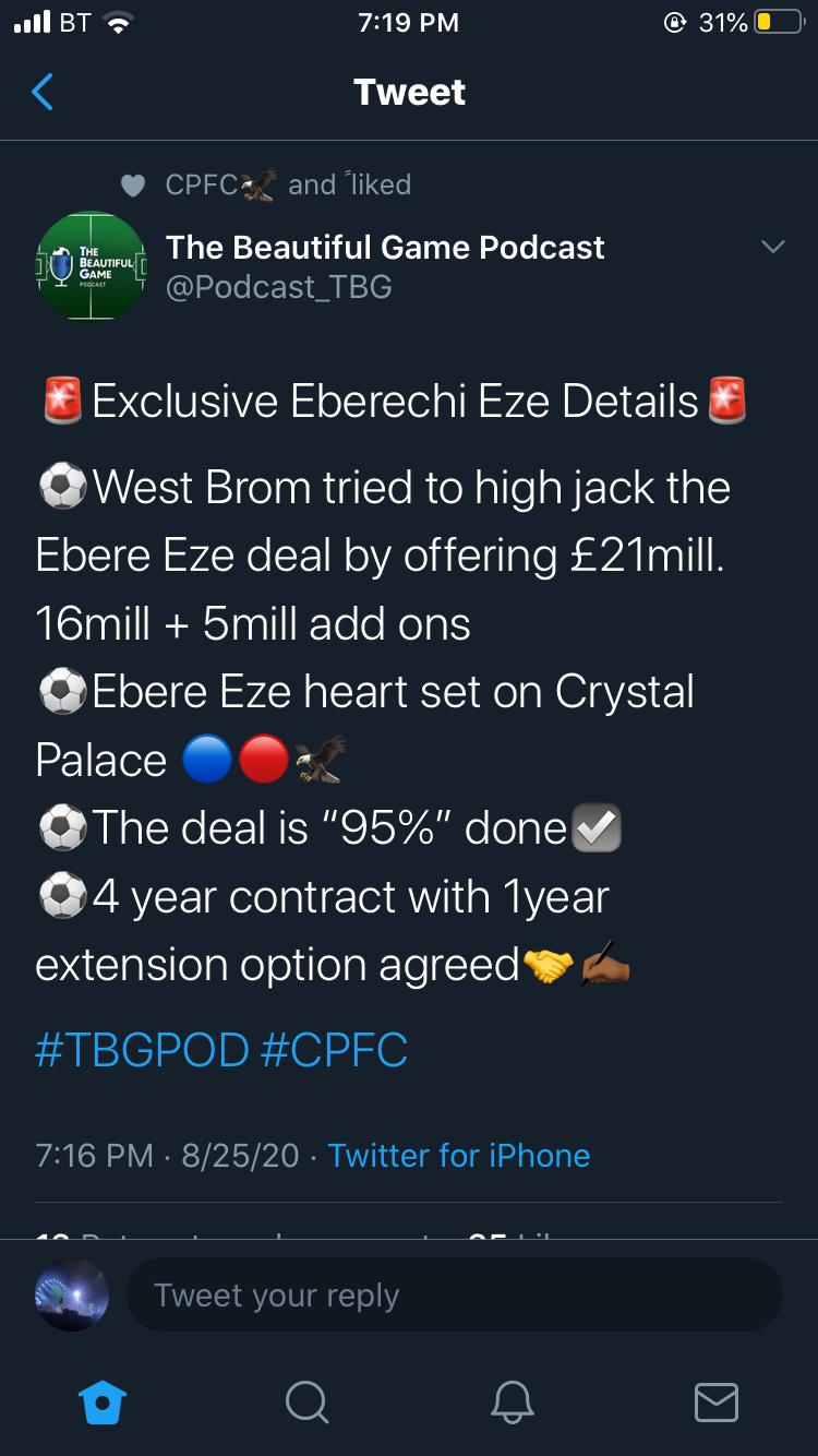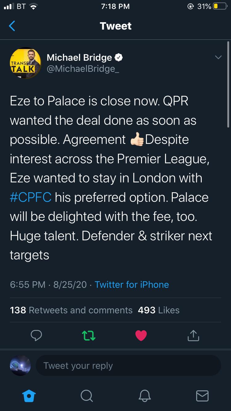 All old news told you deal was agreed for £20m weeks ago what a signing. I'm confused? So we agreed a 20m fee weeks ago? Good news that we haven't pi$$ed about for too long though Anyway, regardless, if this comes off I'll actually be excited come September, when up and until now I had been quite anxious. I actually think if Wilf ends up staying then Eze could also give him a lift, especially if we could secure a striker too. The only one caveat I'll put on this, is that when we were linked with him two years ago some QPR fans were saying he can be a bit lazy, but regardless he certainly has that X factor