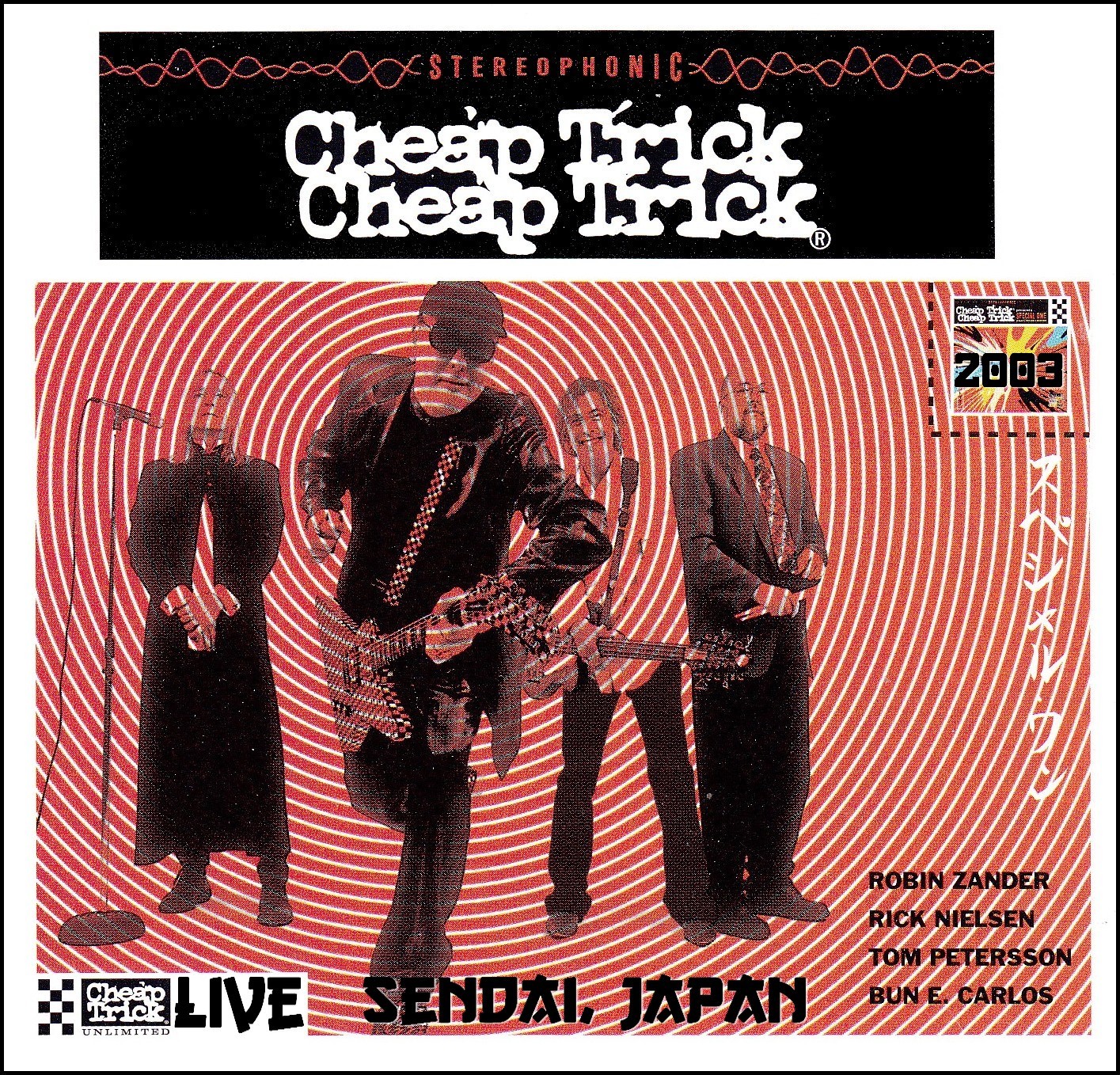 Todays second download is a set by Cheap Trick that was recorded in Japan in 2003. This is in superb quality and is a top soundboard recording. I've posted loads of albums and bootleg by CT in the past - this is another top show. The first five tracks are acoustic - then the band power up and let rip with an electric set that really rocks.... this is thoroughly recommended... Here is a download link I found for :- Live Sendai, Japan 4.8.03 - Cheap Trick (Bootleg) Quality : Superb Tracklisting : 01. Fan club Download Link : [Link] Filesize : 97.8MB (Including Artwork and Tracklisting) Tracks 1-5 - accoustic Enjoy!