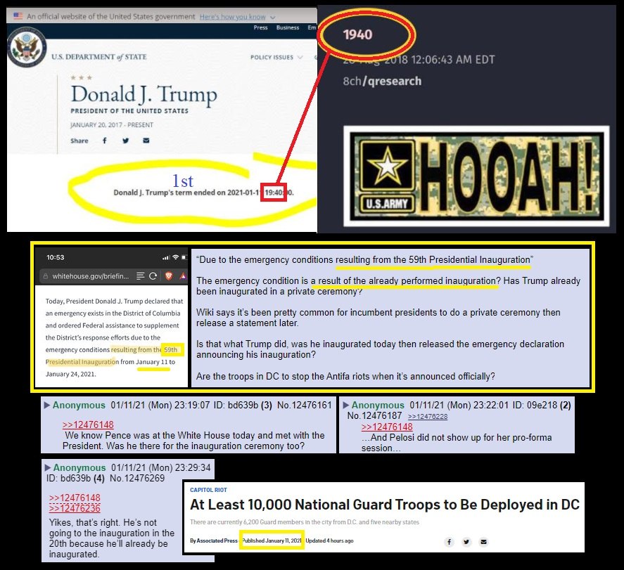 See, this is how Q works. You saw my post hopefully about trump leaving office. Check times and dates. Q posts stuff to the minute to correlate with the posts So top of the pic shows you it’s linked for code ‘bring in military’ And as I have shown you repeatedly in last three pages, military is being brought in by force into dc Below is a typical Q post. Q is top military leaders all working together . It’s been a marvellous journey and if you take me seriously you can enjoy the end of the show. But there is more to come after 20th. This will carry on for some time still