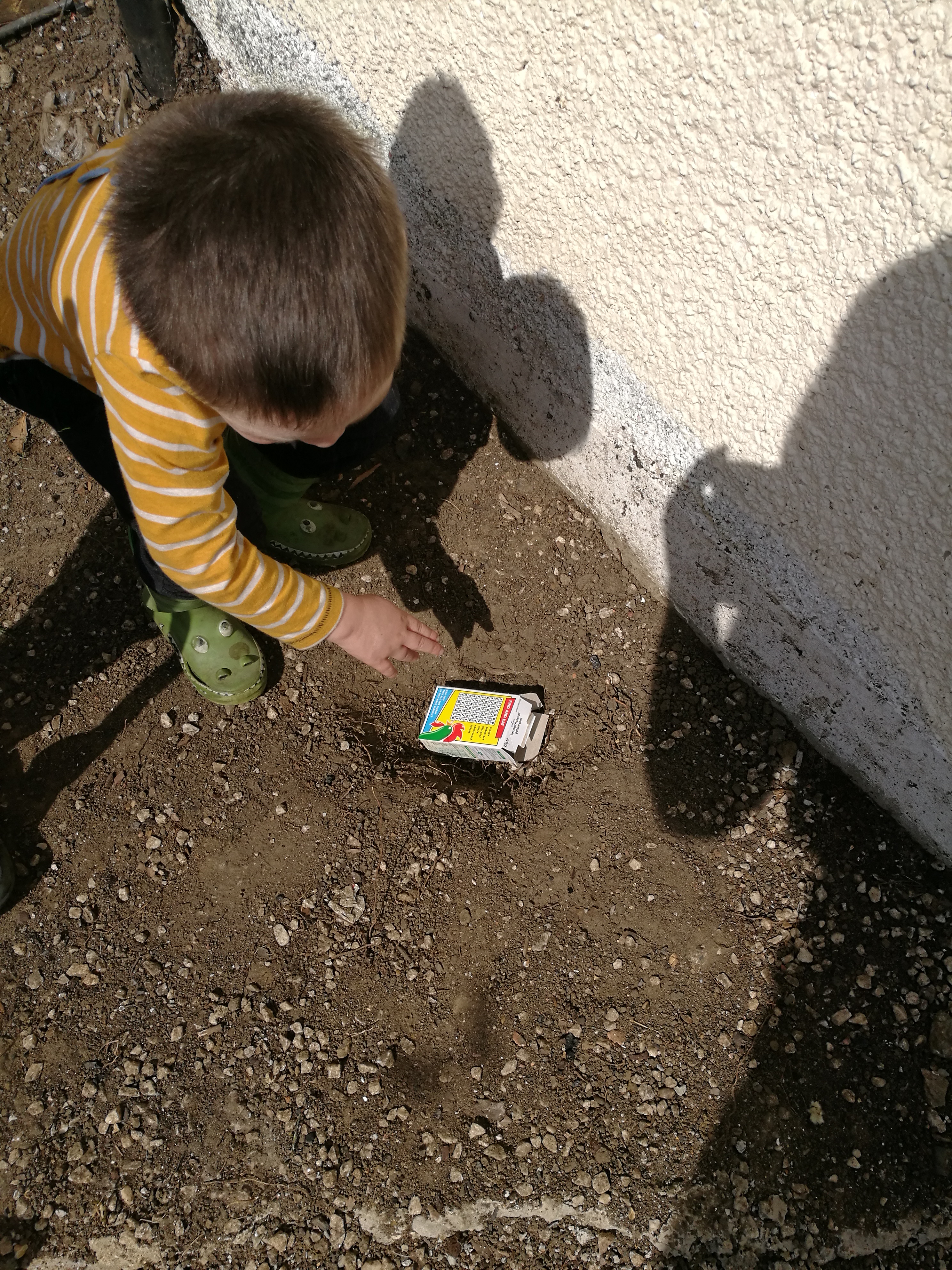 Cornflake box coffin for a dead bird found in the garden.