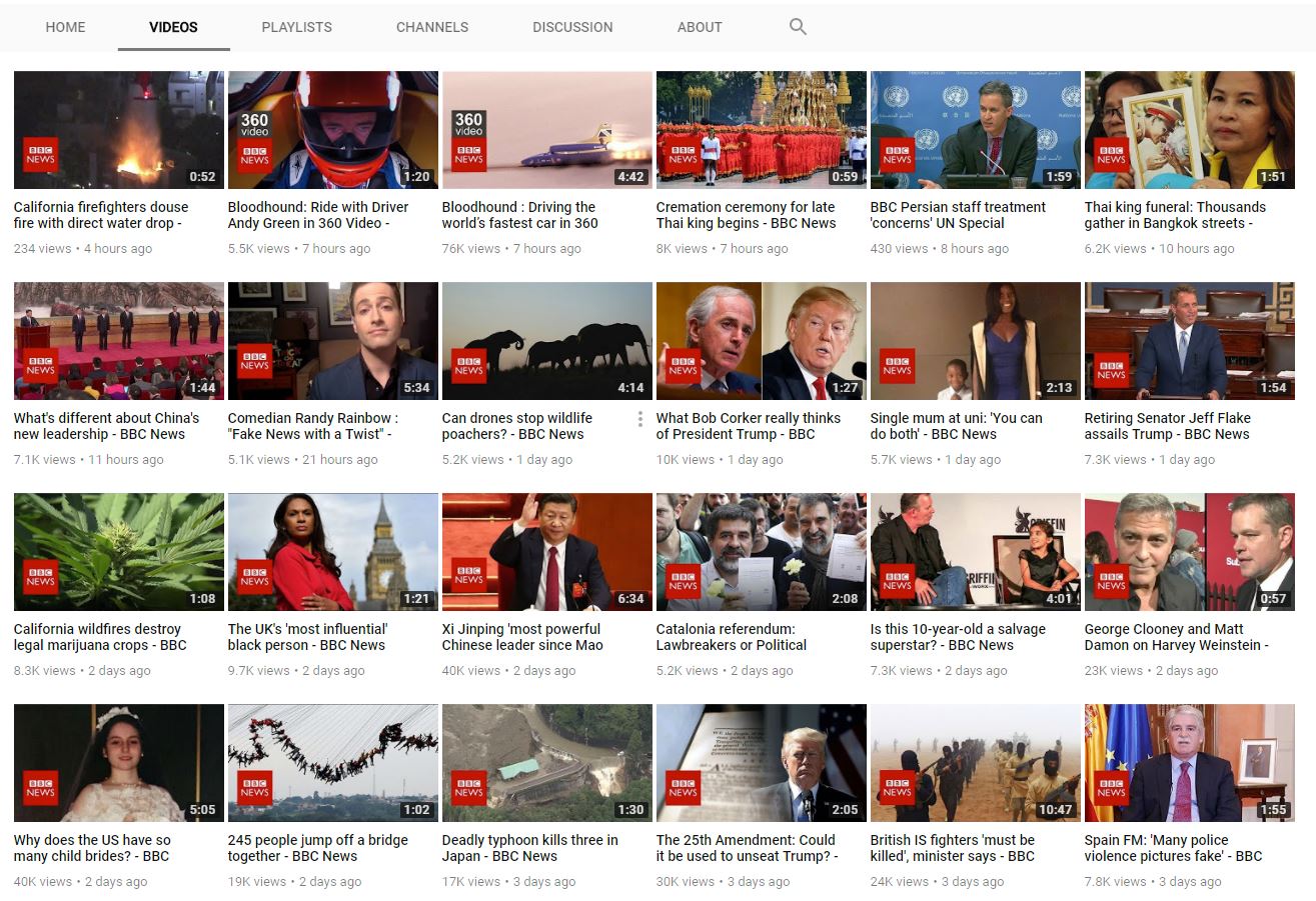 The latest example on the BBC's YouTube page of their anti-Trump propaganda [Link] See attached screen shot. NOTHING on Hillary Clinton and the Democratic National Committee paying for the discredited dossier on Trump. NOTHING on the investigation into the Obama administration and Hillary Clinton selling of 20 per cent of the USA's uranium to Russia via backhanders. Instead, there are three anti-Trump stories. Says everything you need to know about the BBC's anti-Trump and anti-Republican agenda. Edited by Penge Eagle (26 Oct 2017 9.23pm)