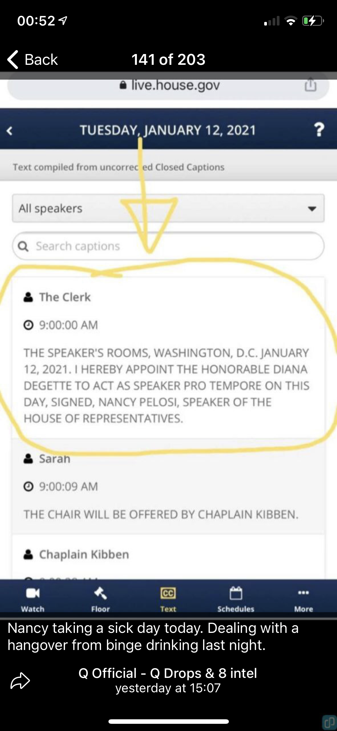 Pelosi gone sick They’re all panicking. Who’d go sick on a day your pushing an impeachment.