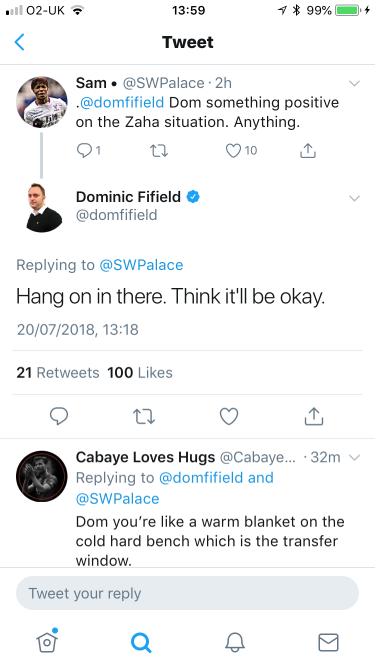 This post has been merged from a topic called 'The Wilfried Zaha Thread' by Midlands Eagle Dominic Fifield not getting carried away in the media storm and he’s usually accurate.