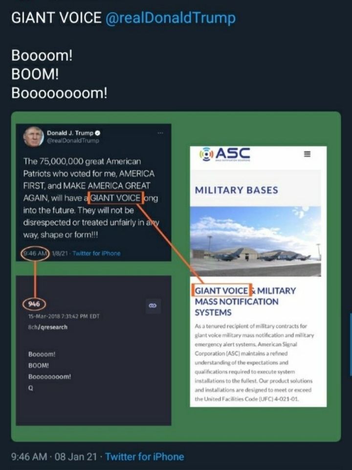 This one isn’t q but navy. Giant voice. He’s been taken off all platforms. So has to put his message out to public soon doesn’t he? But how if he’s been silenced. They have the tek to make this end like a movie.