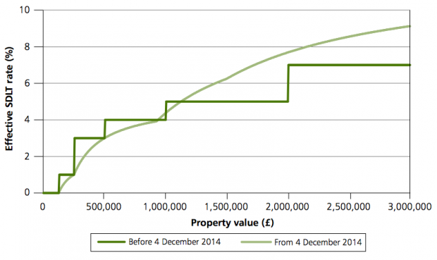 You're right actually, but that one price does seem the very worst case example. They've presumably done it to stop people keeping prices artificially just under the thresholds. I'm sure there must've been many deals where it was worth more (sold for more) but the "extra" above the threshold was paid in one form or another, off the record. That's why I think it is definitely a good tax change. Those distortions to the market were painful (and by the way the Revenue started cracking down heavily on transactions just below the thresholds where people paid extra for "chattels", "fixtures and fittings" etc. - because people were taking the mick with how much they were paying to avoid the slab rate increases). I completely support the change. I think it will lead to a more "natural" and "free" market for property.* But the examples the HMT gave were disingenuous in that they were designed to maximise the apparent reduction in tax. In fact there are even properties between £1m and £1.125m that will pay less tax under the new system. *Although there is an argument that this might accelerate house price growth, especially in areas of London, which would be a bad thing. Edited by OknotOK (04 Dec 2014 12.38pm)