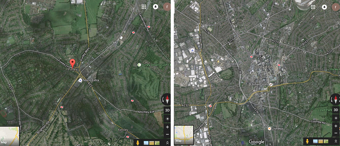 I was born in Purley hospital but even I would have to say that describing Purley as 'leafy' is like describing Brighton beach as 'sandy'.