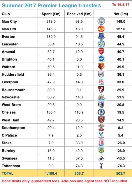 I think it's more a case of £40 mil average net spend being manageable now for prem clubs. £10 mil last summer. That'll take last season to about £50 mil. Hence why £30 mil this summer was quoted. About £7mil on Riederwald and loan fees on Cherk & Mensah = £10 mil total. £20 mil left plus sales of one or two. Edited by Rudi Hedman (17 Aug 2017 11.03am) I don't disagree with you and have been saying this since Sam left. I think it was a major reason why retirement looked so appealing.