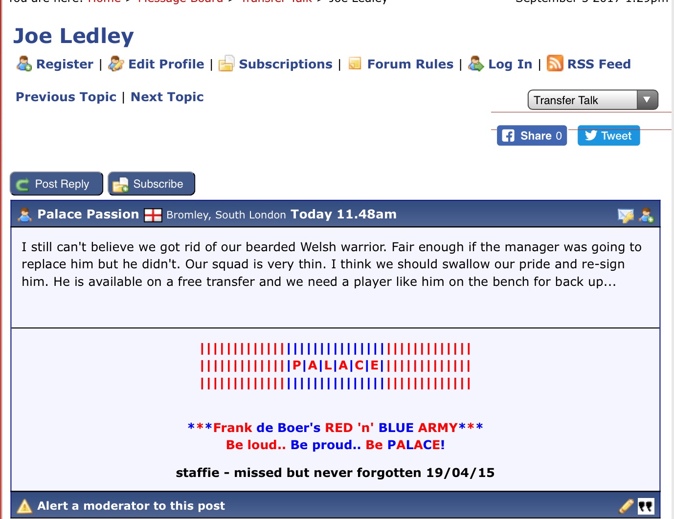 Jokanovic has been linked with the palace job and tried to Dwight for Fulham. Wonder if he tries to resign Dwight should he become our new manager? Dwight has shown he's great in the championship and as such would likely be a good purchase for Fulham. Doubt any prem managers would be queing for his signature tho. If Rafa is willing to sell him then my bet is he's right and as much as we love Gayle the Prem is currently beyond him. But who knows in a year or two? But doubt anyone will risk £10m. Edited by Goldfiinger (05 Sep 2017 7.26pm)