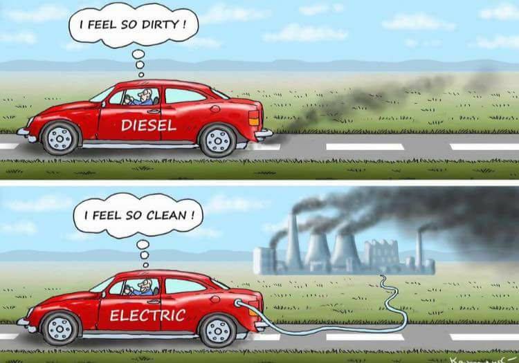 love these little piccies There is something to this in countries where the main energy is coming from coal. However, in most of Europe electric cars, well-to-wheel, will emit 25% less carbon dioxide over its lifetime than a diesel car. Edited by Stirlingsays (06 Nov 2017 9.41am)