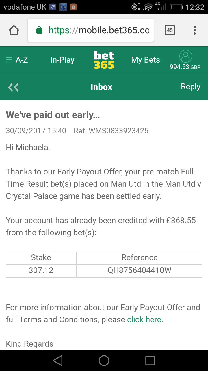 Michaela why the odd stake ? No.it was my winnings for that week. Started with £50 on Celtic from the week before and did European games in the week.
