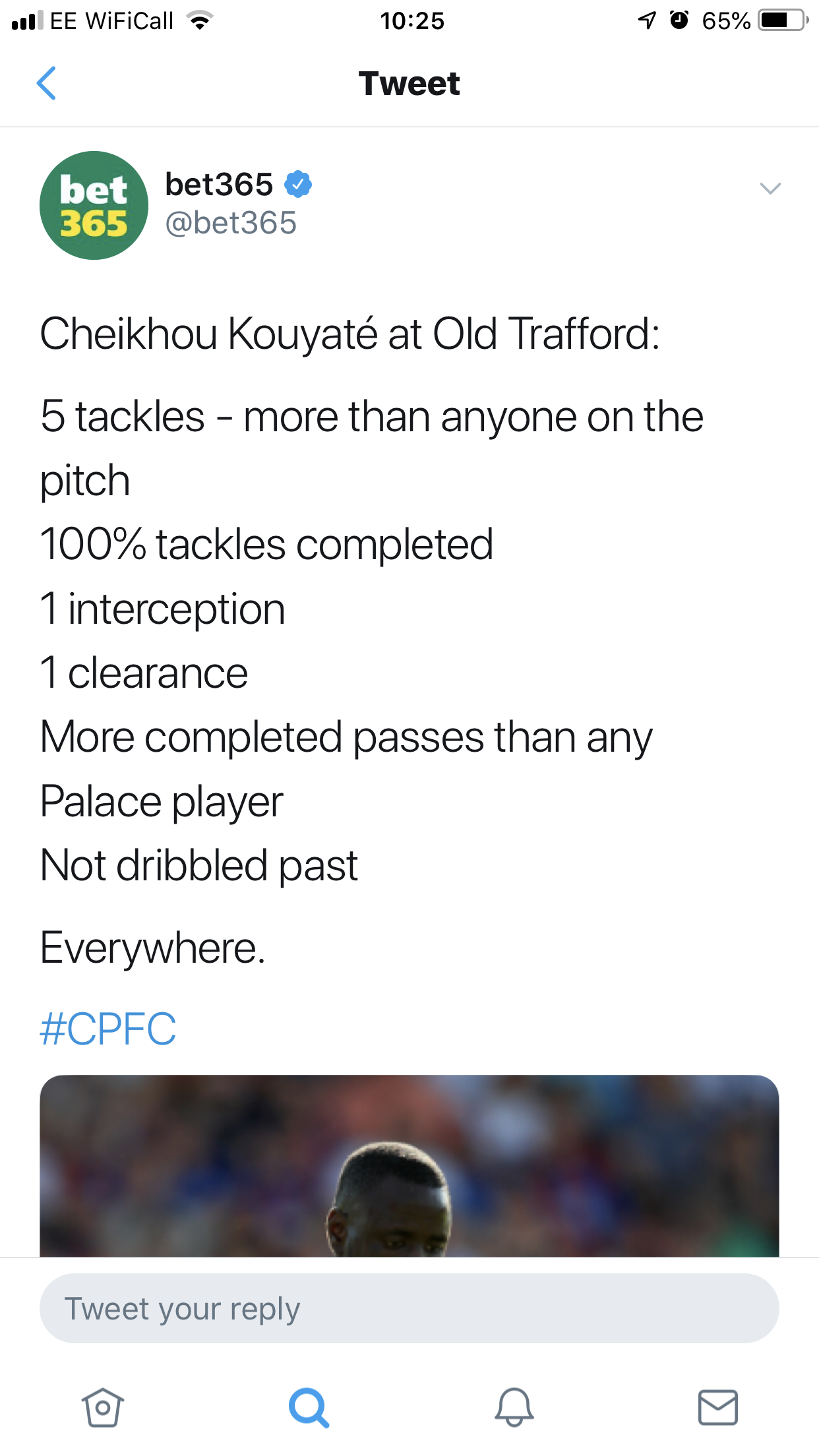 What does Kouyate add that I'm missing? I honestly don't think I've ever seen him complete a pass to another Palace player. Against Man U, I saw him get the ball twice, and each time, under no pressure, he tapped it directly to a Man U player. I see that every game from him. Is he so great defensively that we can afford his inability to pass the ball? It just seems that all our midfielders are defense first, and Kouyate is more of the same. If we play with 5 midfielders, including Zaha and Schlupp/Andros on the wings, then ok, I guess we can deal with Kouyate. Other than that, he seems like a less physical version of Luka, or a less offense version of MacArthur. I'd prefer a midfielder who could add some offense. More completed passes than any other Palace player at OT. So seems you are missing them. That said I did too for at least the first half as pretty sure I made the same comment on the match thread.