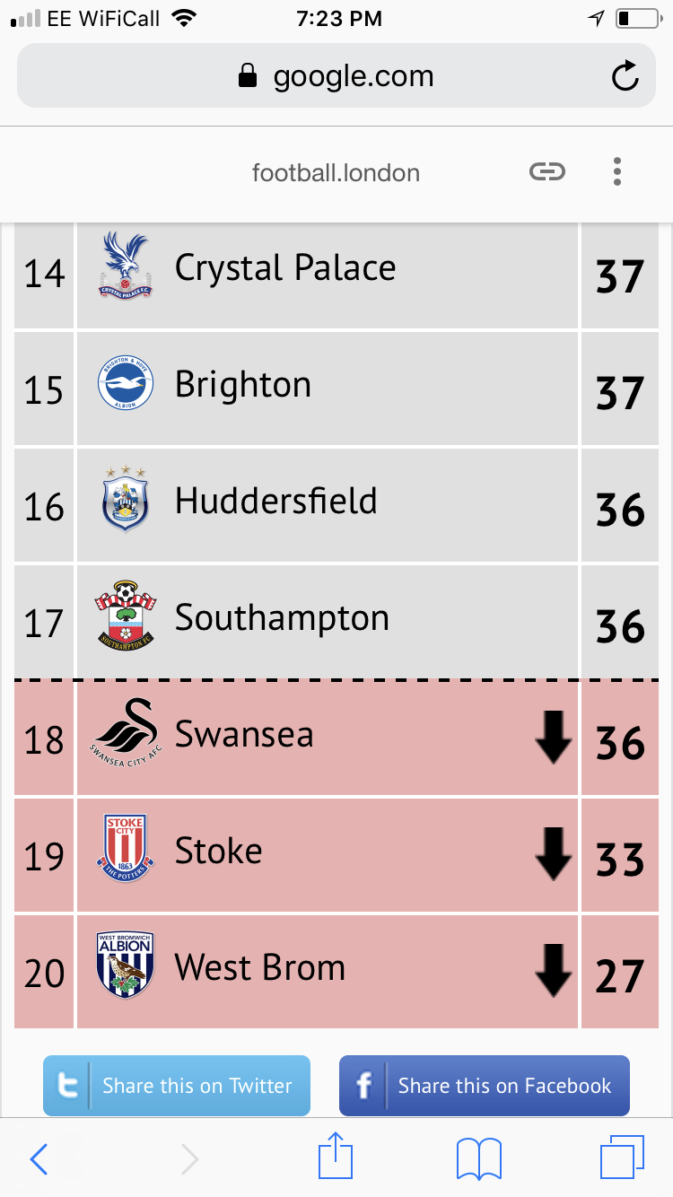 It’s been a couple of games since i did the score predictions for the relegation run in. Here’s the result from my predictions. This highlights just how tight it could still be if Palace only pickup two more points.