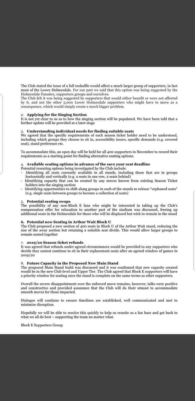 And page 2 Thanks Lumsdero. Overall i think that was a positive meeting. Still not convinced the Club are doing enough to compensate those affected, but it seems they are doing their best to move them with as little disruption as possible.