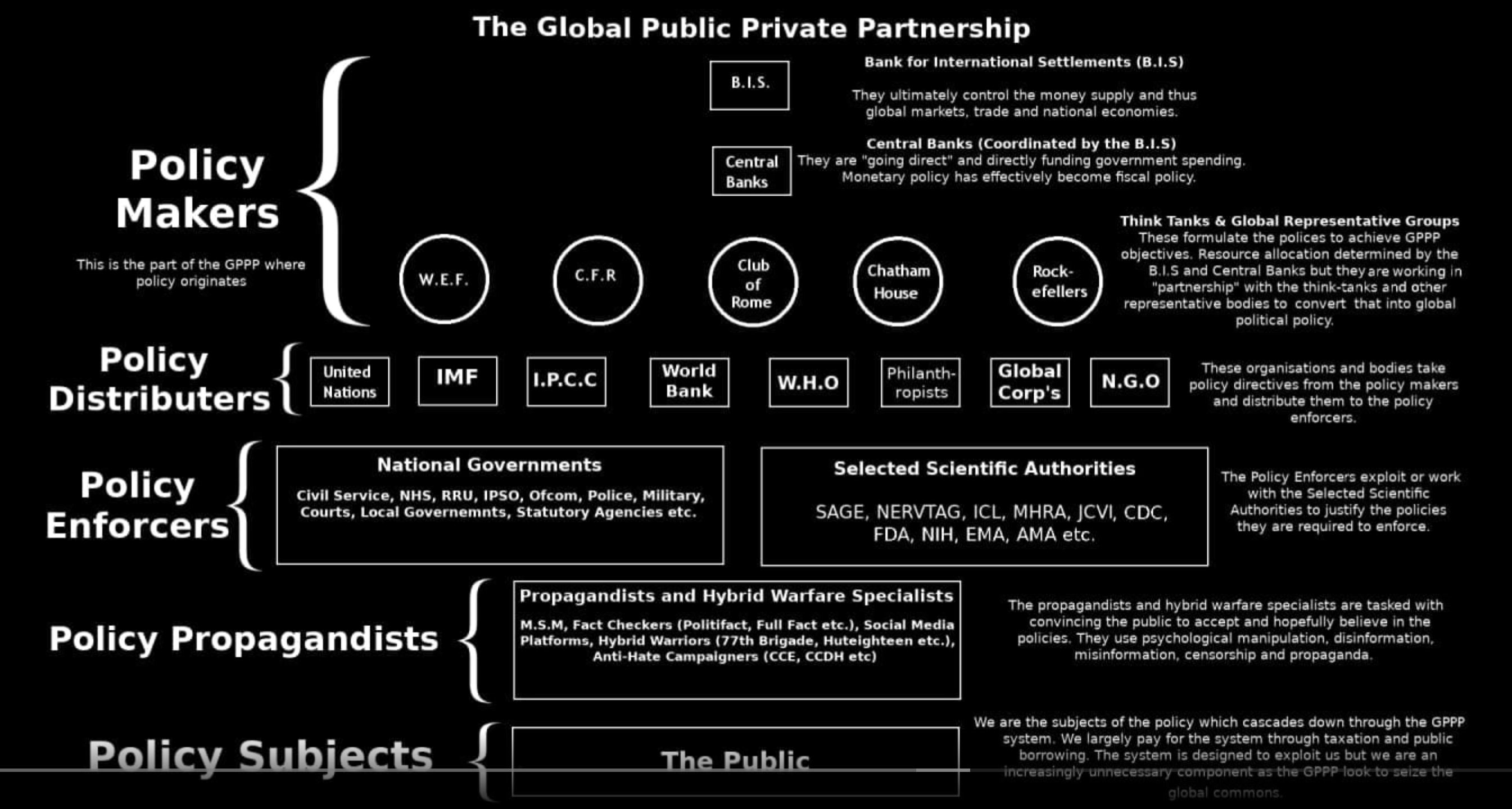 For those reading the denialist's post above here is an image of the globalistic bodies that have considerable power over what happens in yours and my life. Apparently it's all a conspiracy theory as of course they don't talk...I mean all those conferences and Davos are just jollies....and your politicians don't have to heed them. (I mean Johnson changed his covid policies at the start just talking to scientists who aren't funded or influenced by anybody)...and of course the rich's interests are really just your interests too.....I mean the wealth transfer of the last two years was a pure coincidence. It's worth a chuckle if nothing else. Edited by Stirlingsays (02 Feb 2022 9.04pm) Davos is NOT a meeting of these mythical elites. That is another typical right-wing conspiracy theory. Someone is paying far too much attention to dodgy websites, forums and YouTube junkies. Davos is a vital tool of the World Economic Forum, a place where leaders from business, government, international organisations, civil society and academia come together to address critical issues at the start of each year. It produces ideas. It doesn't take decisions. It works on eight thematic priorities: global cooperation; economic rebalancing; society and equity; climate and nature; innovation and governance; industrial transformation, risks and resilience; and global health. The 2021 meeting was online and had around 2000 participants. The large number of debates can all be followed by anyone who wishes to. That Johnson changed his policies having listened to concerned people is not something to be criticised. It is to be welcomed. The idea that any responsible scientist, which the overwhelming majority are, would deliberately offer advice they don't believe in because of commercial pressures, is a disgusting suggestion. I never encountered that during my long career, and I knew many scientists. There will always be the odd rogue, but they rarely gain any traction. Peer review sorts them out. That image has appeared here before and has about as much credibility as the idea that Millwall will win the cup this year. I don't chuckle at this level of cynicism. I find it appalling that it exists at all. Encouraging distrust in those seeking to find ways to make our world safer, happier and healthier by labelling them as "elites" is not something I would be proud of.